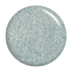 Silver with pale blue tint. Metallic foil sparkle. Opaque. Cool undertone.